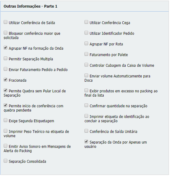 - A opção Conferir Packing por tarefa agrupando por Pedido (sub menu Dados da Configuração da Onda), ficará desabilitada.