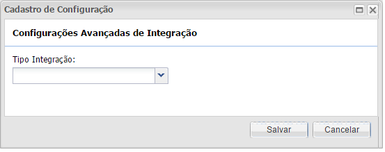 - Tipo Integração: será possível escolher entre os tipos abaixo citados, sendo possível criar apenas um registro de cada tipo.