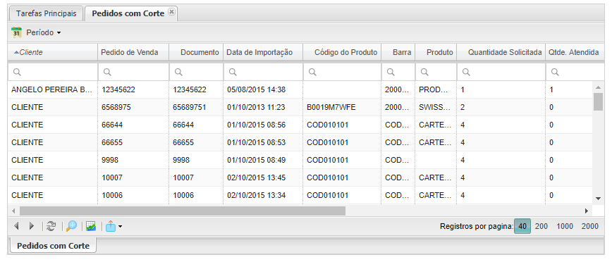 Neste relatório serão exibidos os produtos, com sua barra de embalagem, e informações da nota que tiveram corte na separação do produto, exibindo o Status da Nota Fiscal e o Status da Liberação.