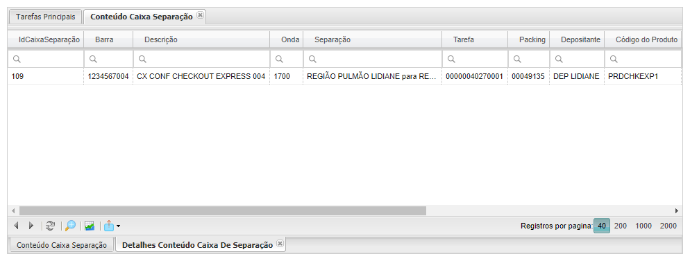 Menu: Consulta > Caixa de Separação > Conteúdo Caixa Separação