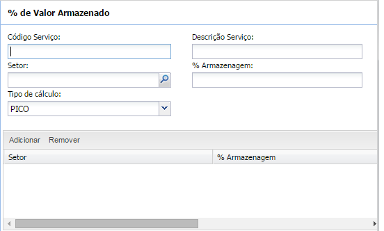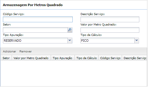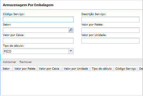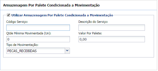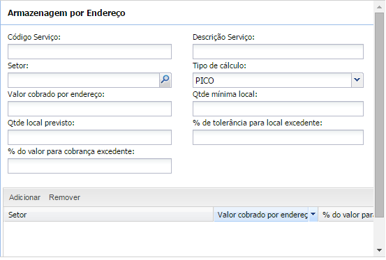 - Valor cobrado por endereço: Valor do serviço de armazenagem para uma posição dentro do setor escolhido.
