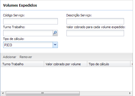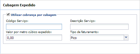 - Descrição Serviço: Descrição do serviço que constará na fatura e relatório de faturamento. Exemplo “Volumes Expedidos”.