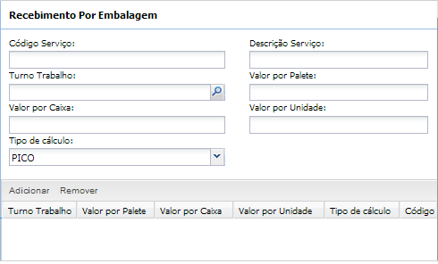 Utilizar para cobrança de serviços de recebimento, nesse critério o sistema utilizará do valor do documento de movimentação para cálculo do serviço de recebimento. Sendo possível definir valores diferentes por turno de trabalho. O turno de trabalho deverá ser parametrizado previamente no cadastro de turno de trabalhos.