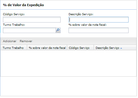 - % Sobre Valor da Nota Fiscal: Percentual sobre o valor dos documentos fiscais expedidos.