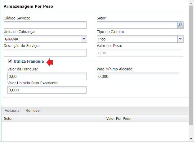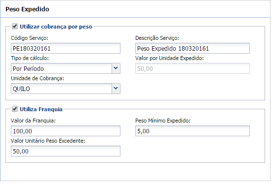Utilizar para cobrança por Peso Expedidos. Critério utilizado com base no Peso dos materiais expedidos do Armazém.