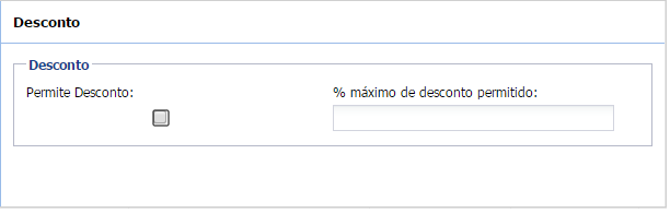 - Percentual Máximo de Desconto Permitido: Campo será habilitado se a flag “Permite Desconto” esteja acionada.