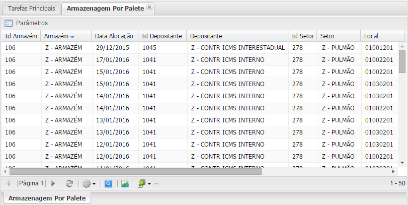 Menu: Gestão de Contrato / Relatórios / Armazenagem Por Palete