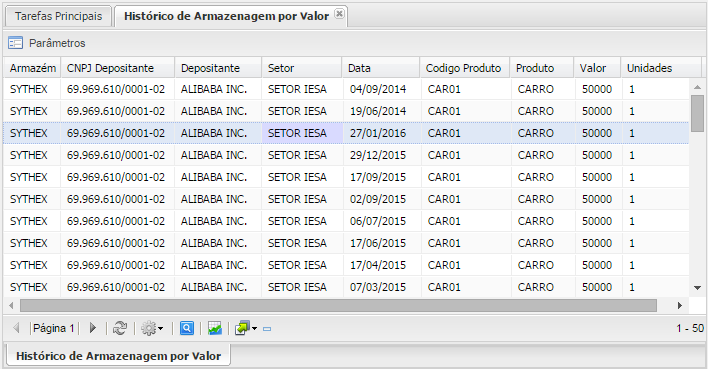 Esta tela apresentará o botão “Parâmetros”, que auxiliará no filtro de Data de Início e Data Final.
