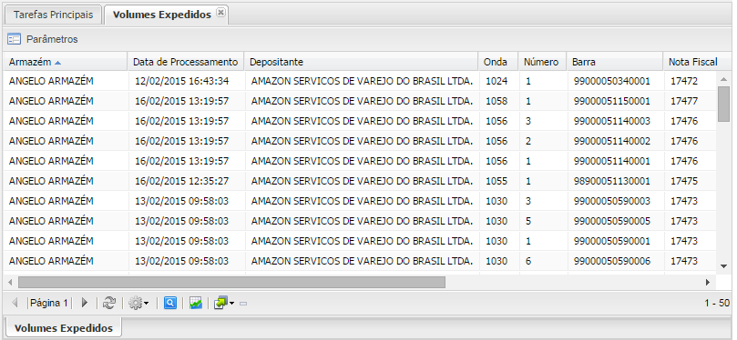 Esta tela apresentará o botão “Parâmetros”, que auxiliará no filtro de Data de Início e Data Final.