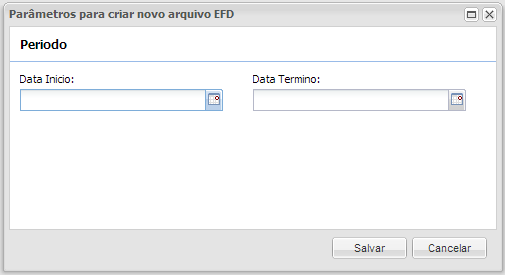 O grid da tela de Escrituração Fiscal Digital, possui o botão Novo Arquivo EFD.