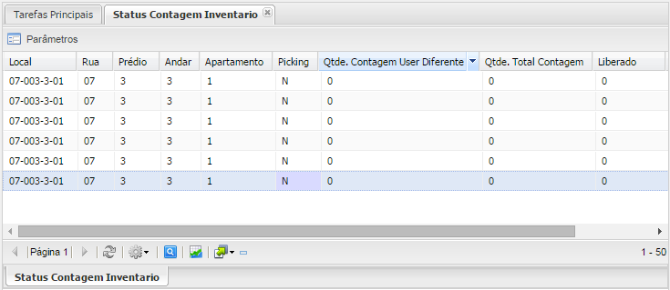 Este relatório exibe a contagem dos locais do Inventário selecionado.