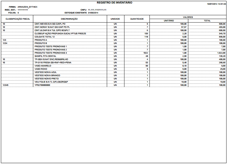 É responsável pela impressão dos Livros de Registro de Inventário para operação de Armazém Geral.