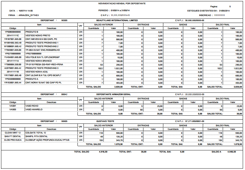 - Será possível realizar Multi-seleção no relatório: “Movimentação Mensal Por Depositante”.