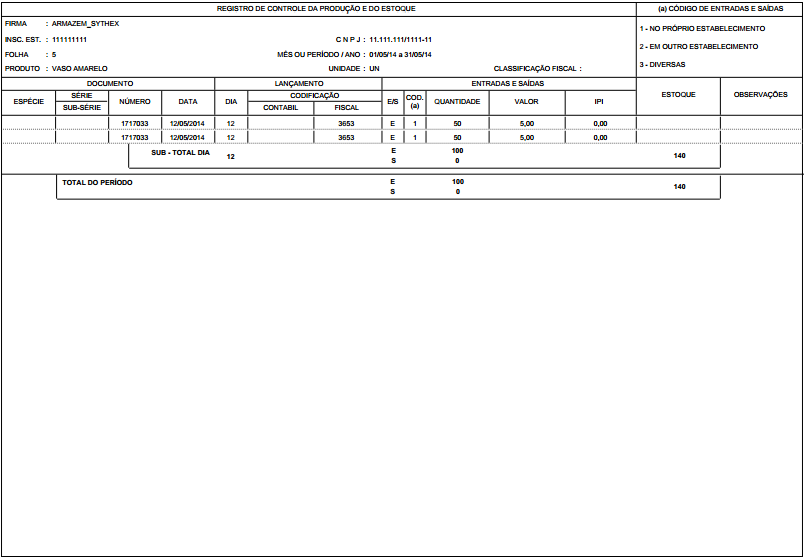 Impressos / Registro Controle de Produção e do Estoque (RCPE)