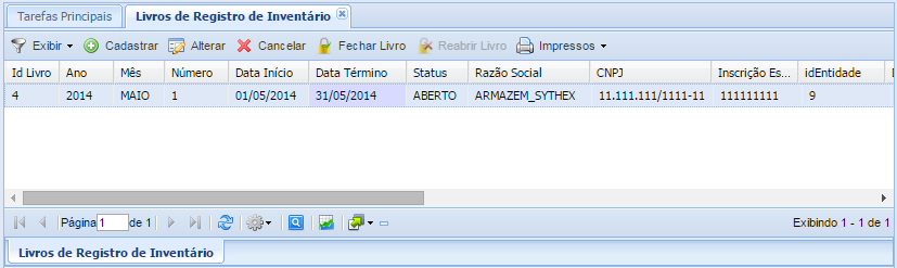 Menu: Livros de Registros / Livros de Registro de Inventário
