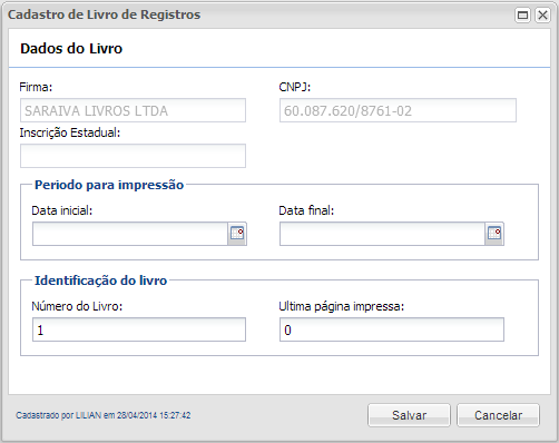 - Número do Livro: Solicita o Número do Livro que será impresso.