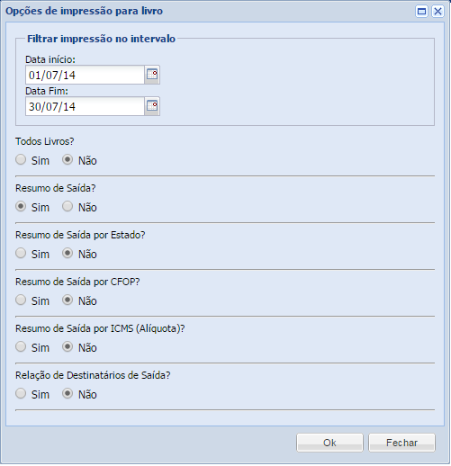 É responsável pela impressão dos Livros de Registro de Saída para operação de Armazém Geral.