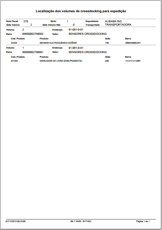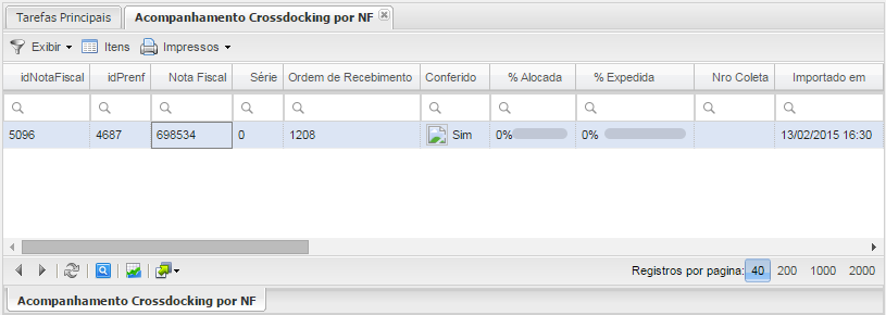 Menu: Monitoramento / Acompanhamento Cross Docking por NF
