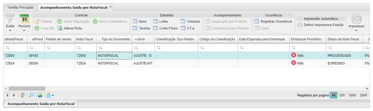 Acompanhamento Saída por Nota Fiscal