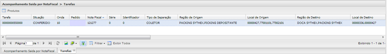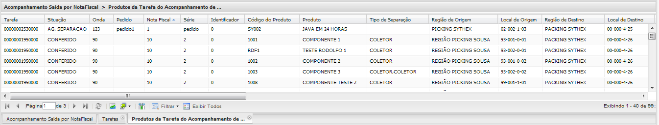 Nesta tela será possível realizar o acompanhamento da separação por produto, da(s) nota(s) fiscal(is) selecionada(s).