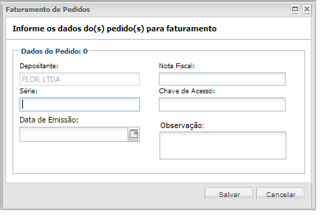 - Observação: a começar da versão 8.8.4.0, permitirá a digitação de um texto livre, caso o parâmetro Habilitar campo observação no faturamento no cadastro do Depositante, estiver habilitado.