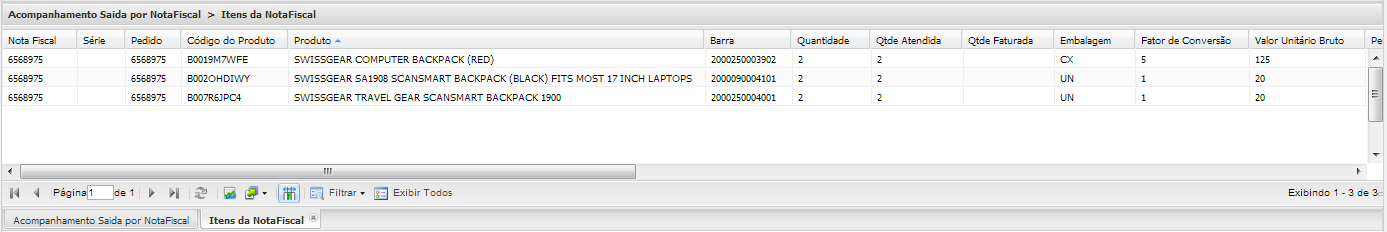 Exibe os Itens da Nota Fiscal.