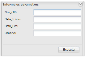 A janela de Parâmetros é usada para filtrar informações ou apenas clique no botão Executar que exibirá todos os registros deste relatório.