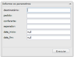 A janela de Parâmetros é usada para filtrar informações ou apenas clique no botão Executar que exibirá todos os registros deste relatório.