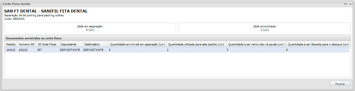 - Se o escaninho da movimentação afetada pelo Corte Físico estiver em status Vazio, Com produto ou Colocando produto, a movimentação gerada pelo corte será atribuída à movimentação afetada;