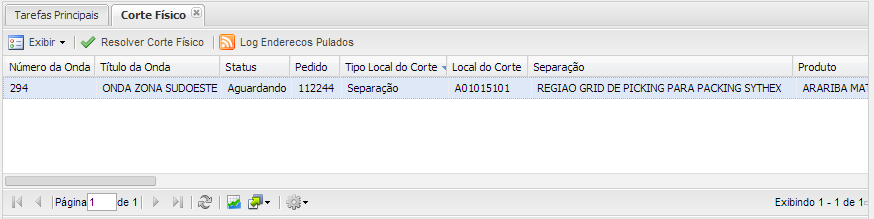 A começar da versão 8.0.1.0, foi adequado a Resolução de Corte Físico de Onda Expedição por Carga, ao clicar no botão Resolver Corte Físico, exibirá as informações do produto, qual palete / tarefa pertence, quantidade em separação, quantidade encontrada no endereço e quantidade a ser cortada por cada item de cada pedido.