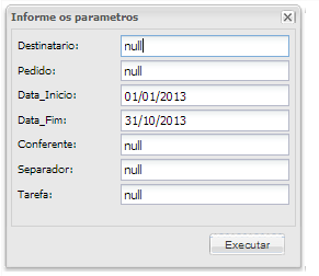 A janela de Parâmetros é usada para filtrar informações ou apenas clique no botão Executar que exibirá todos os registros deste relatório.