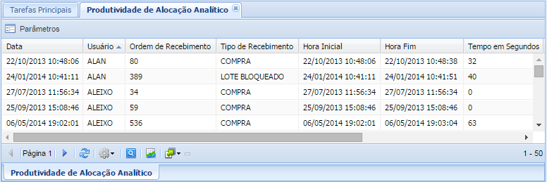 Menu: Monitoramento / Produtividade de Alocação Analítico