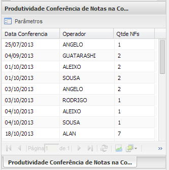 Serão exibidas quantas notas fiscais foram conferidos por um usuário numa determinada data.