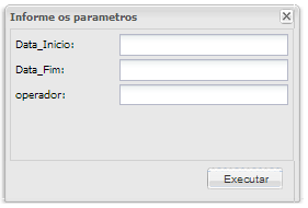 A janela de Parâmetros é usada para filtrar informações ou apenas clique no botão Executar que exibirá todos os registros deste relatório.