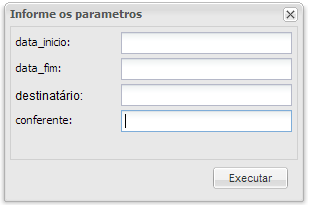 A janela de Parâmetros é usada para filtrar informações ou apenas clique no botão Executar que exibirá todos os registros deste relatório.