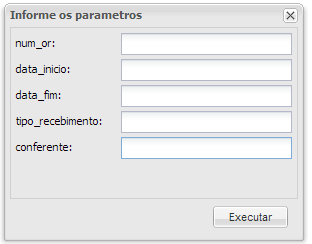 A janela de Parâmetros é usada para filtrar informações ou apenas clique no botão Executar que exibirá todos os registros deste relatório.