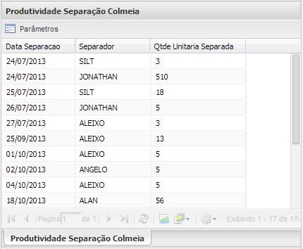 A tela de relatório de Produtividade Separação Colmeia exibirá diversas colunas, com a possibilidade de elaborar diversos filtros, importar arquivos para o excel, agrupar campo, habilitar ou desabilitar colunas.