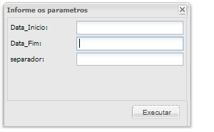 A janela de Parâmetros é usada para filtrar informações ou apenas clique no botão Executar que exibirá todos os registros deste relatório.