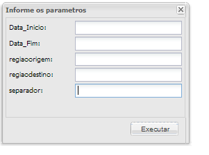 A janela de Parâmetros é usada para filtrar informações ou apenas clique no botão Executar que exibirá todos os registros deste relatório.