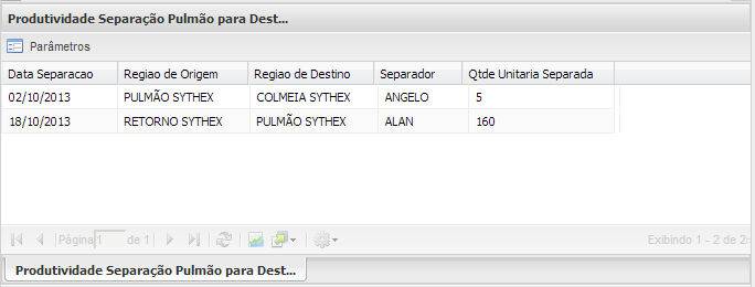 Serão exibidas quantas unidades foram separadas da Região de Origem para Região de Destino por um usuário numa determinada data.