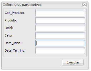 A janela de Parâmetros é usada para filtrar informações ou apenas clique no botão Executar que exibirá todos os registros deste relatório.