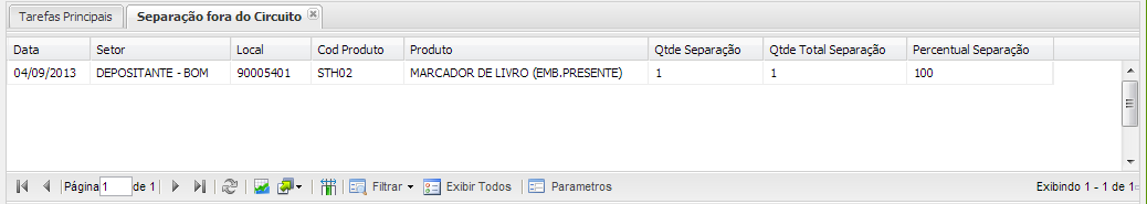 A tela de relatório de Separação fora do Circuito exibirá diversas colunas, com a possibilidade de elaborar diversos filtros, importar arquivos para o excel, agrupar campo, habilitar ou desabilitar colunas.
