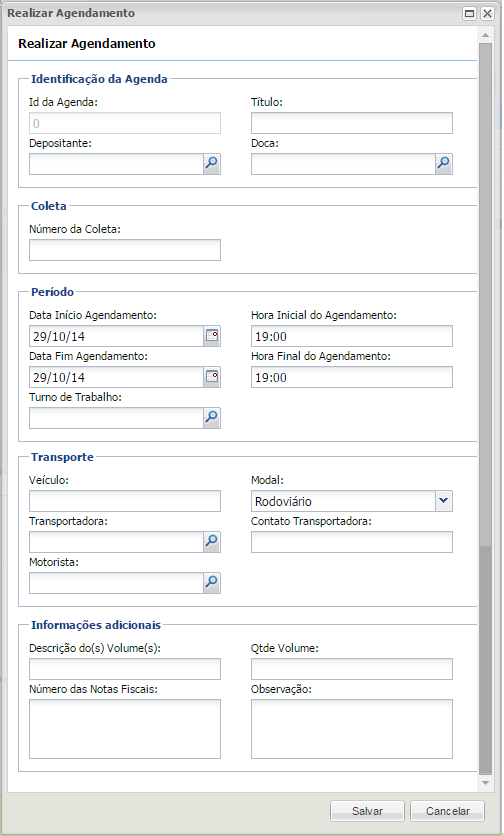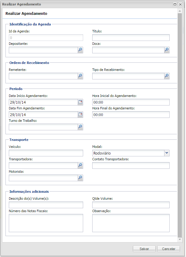 - Agenda de Transporte / Realizar Agendamento do tipo Recebimento;