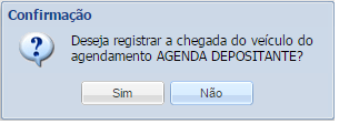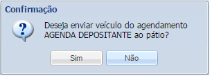 No menu Cadastro / Agendamento / Confirmação de Agenda de Transporte / botão Autorizar Entrada do Veículo, será selecionado quando o veículo for direcionado ao pátio para aguardar descarregamento. Neste momento a agenda ficará com a situação “Veículo no pátio”. Terá registro de usuário, data e hora da realização da atividade.