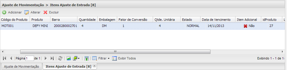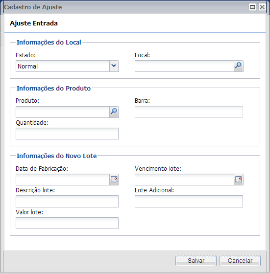 Menu: Movimentação > Ajuste > Ajuste de Movimentação