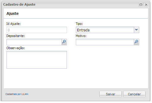 - Motivo: Escolher o motivo de Ajuste que foi previamente cadastrado no menu Motivo de Ocorrência.
