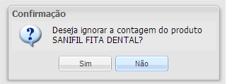Exibirá janela onde o sistema irá questionar se a contagem do produto será ignorada ou não.