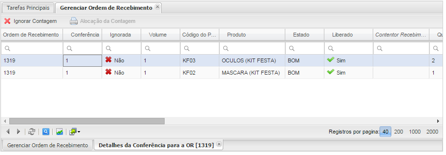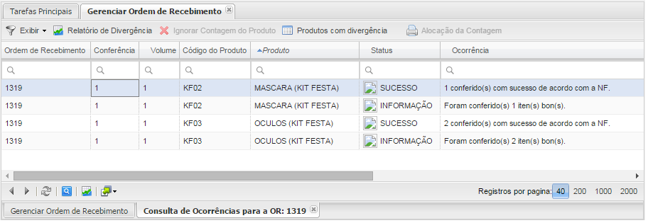 Criará via sistema a Conferência dos produtos por embalagem unitária que estão relacionados à Ordem de Recebimento, desde que não exista a conferência de Informação Específica na entrada, pois se houver a coleta de Informação Específica a conferência dos produtos será feita pelo Coletor de Dados.