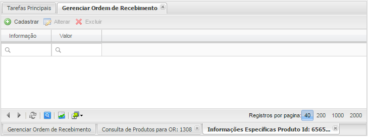 - Ordem de Recebimento: Exibirá a OR que foi selecionada.