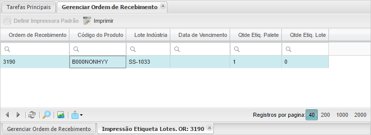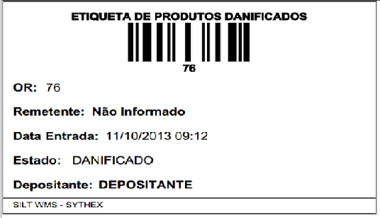 Se houver algum produto classificado como Danificado, Vencido ou Truncado para a Ordem de Recebimento selecionada, será possível imprimir a etiqueta para o palete, sendo de identificação do material danificado.